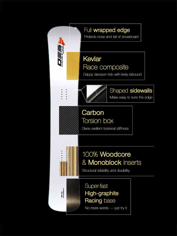 Inserts can be made according to the customer’s own measurements in case the order is not less than 24 same snowboards.