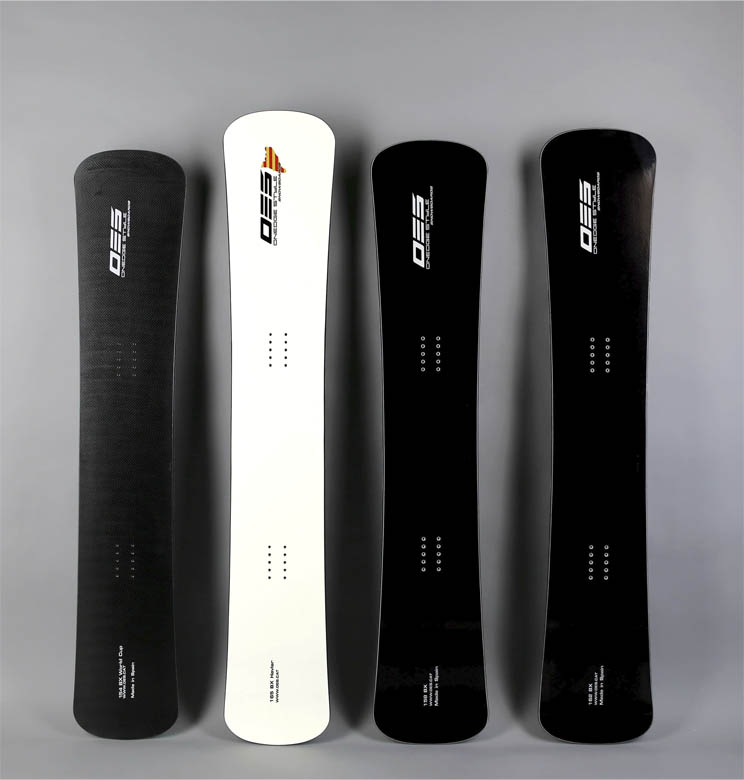 The customary snowboard topsheet is white with OES logo