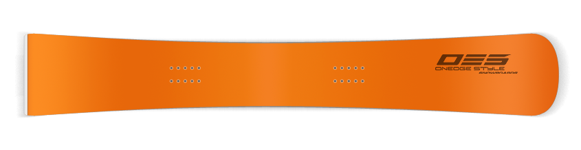 The customary snowboard topsheet is white with OES logo. Board Fiberglass — logo without the flag.