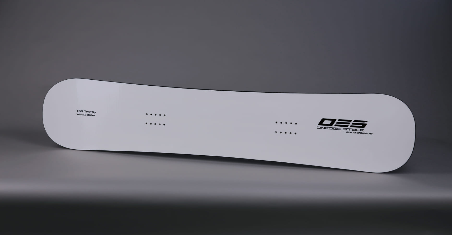 The customary snowboard topsheet is white with OES logo.
