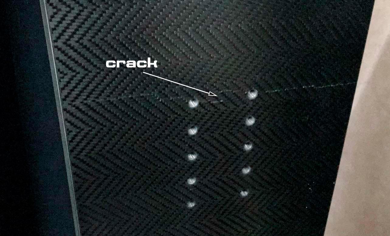 We reserve the right to refuse the warranty repairs if the impact damage is obvious. Such as you can see in the example below.